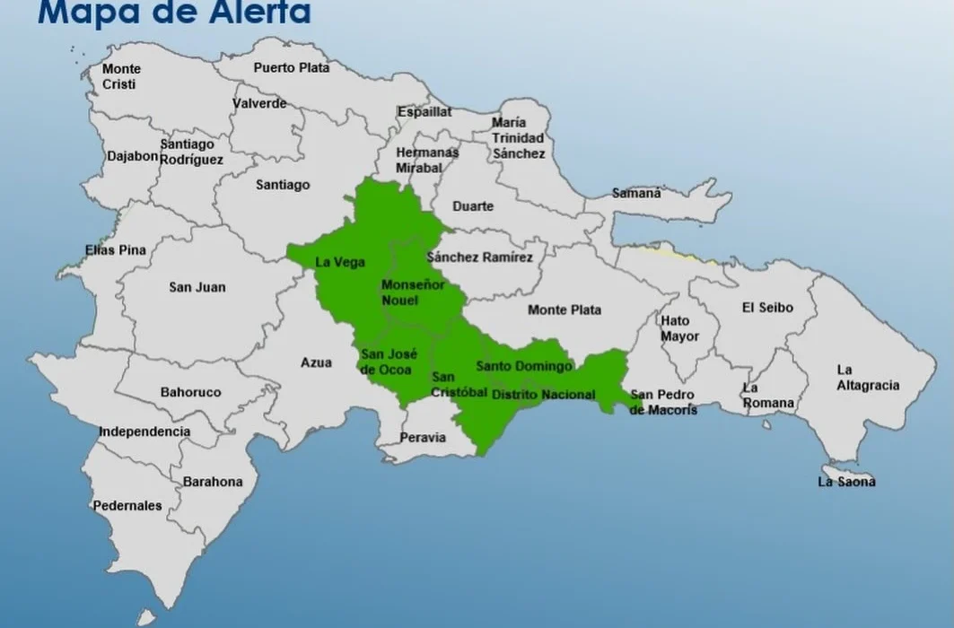 El Centro de Operaciones de Emergencias (COE) informó este jueves la ampliación del nivel de alerta verde para seis provincias y el Distrito Nacional, ante las condiciones meteorológicas inestables provocadas por una vaguada que incide sobre el territorio nacional. De acuerdo con el más reciente boletín del Instituto Dominicano de Meteorología, las imágenes satelitales y